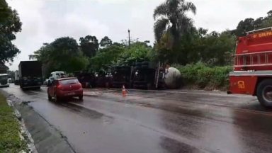 A Polícia Rodoviária Federal atendeu nessa manhã, na BR 476, quilometro 246, um acidente envolvendo um veiculo Fox e uma carreta com biodiesel. A pista ficou parcialmente interditada atuando no sistema pare e siga. Segundo informações do caminhoneiro o Fox teria invadido a pista contrária […]